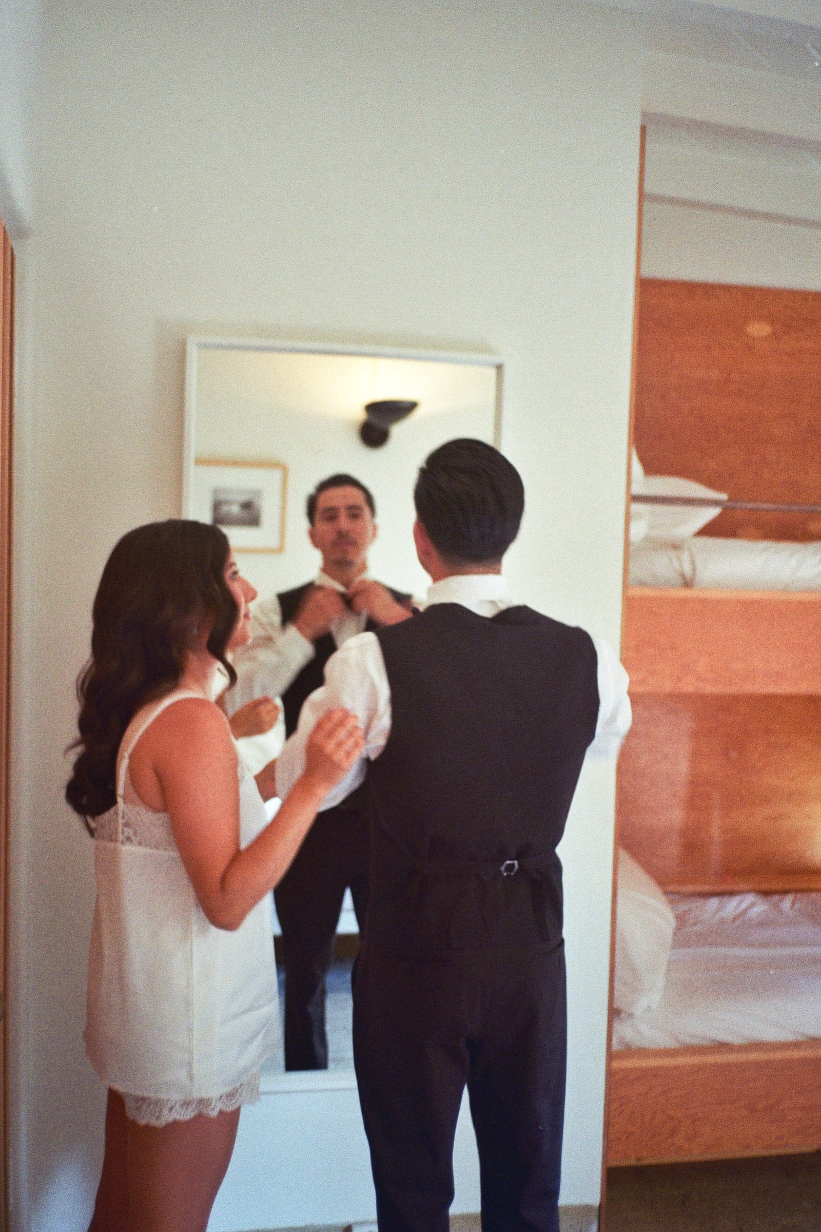Brenda and Chris began their elopement day at Hotel June in Malibu. Their morning was slow, sweet, and intentional. They got ready together, helped one another with the final details, and shared a quiet first look right in their room. I had so much fun capturing candids of the couple getting ready together, it felt so easy and low stress.